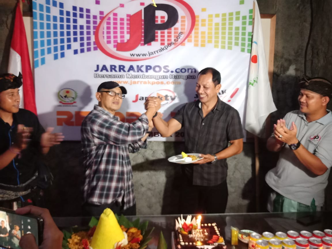 DENPASAR, Kilasbali.com – Setelah genap berumur setahun, 12 Desember 2018, portal media online JARRAKPOS.com merayakan hari jadi pertamanya yang bertajuk “JARRAKPOS.com REBORN 2018” secara sederhana di Kantor JARRAK POS, Jalan Danau Tempe No.30, Sanur Kauh, Denpasar Selatan, Denpasar, Rabu (12/12/2018). Pada kesempatan itu, hadir sejumlah undangan yakni CEO Pelindo III Regional Bali Nusra I Wayan Eka Saputra, Kepala Bidang Trantib Satuan Polisi Pramong Praja (Satpol PP) Bali Dewa Nyoman Rai Dharmadi, SH.MH dan Pengusaha Reklame Weda JAGIR serta undangan lainnya.