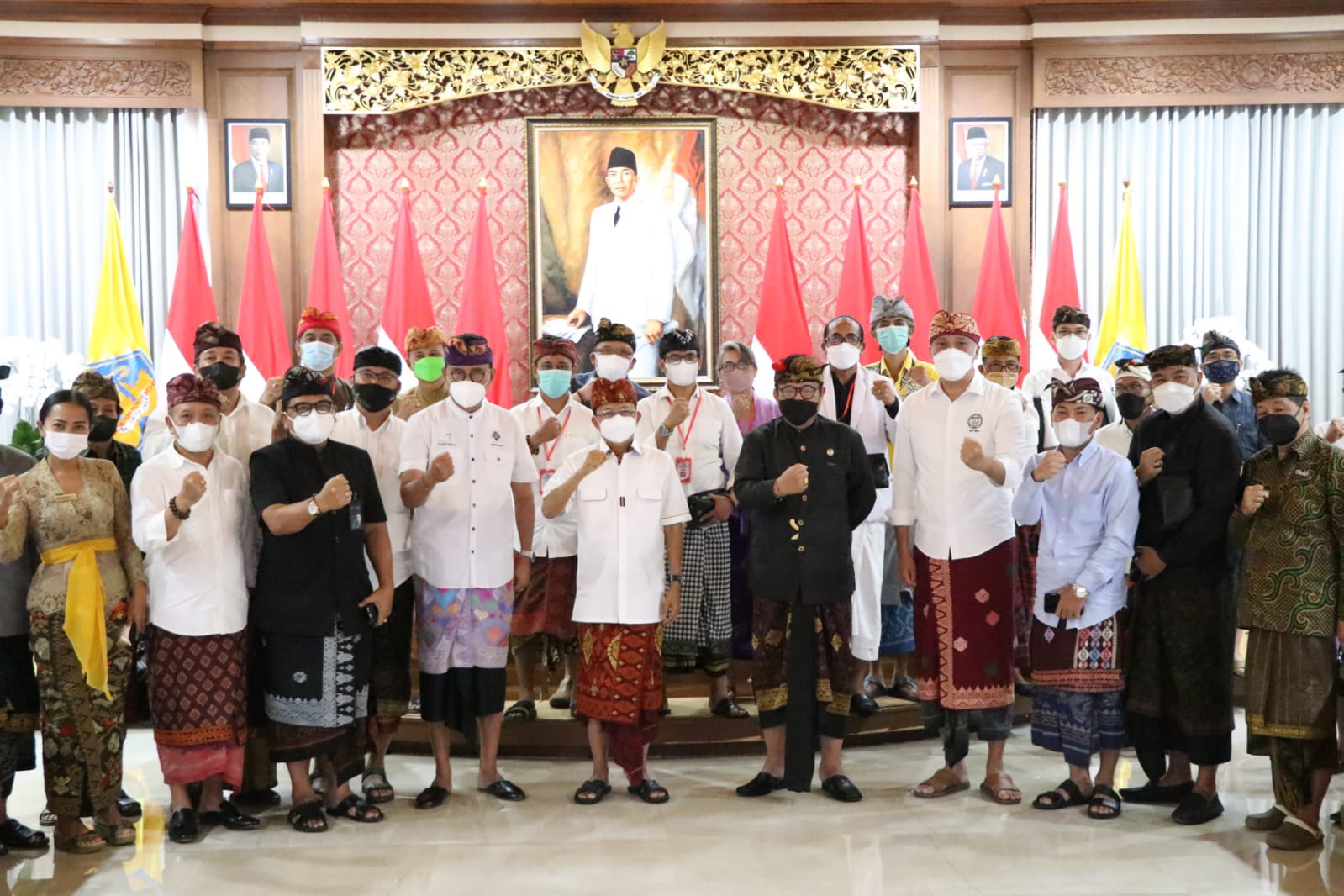 “Jadikan ini komitmen kita bersama agar bisa secepatnya kita wujudkan one island green zone. Kalau kita mau lebih cepat, kita harus sama-sama solid, komit, dan meredam egoisme,” tegas Gubernur Koster didampingi Wakil Gubernur Bali, Tjokorda Oka Atha Ardhana Sukawati saat menerima pelaku pariwisata di Jayasabha, Denpasar, Kamis (16/9/2021).